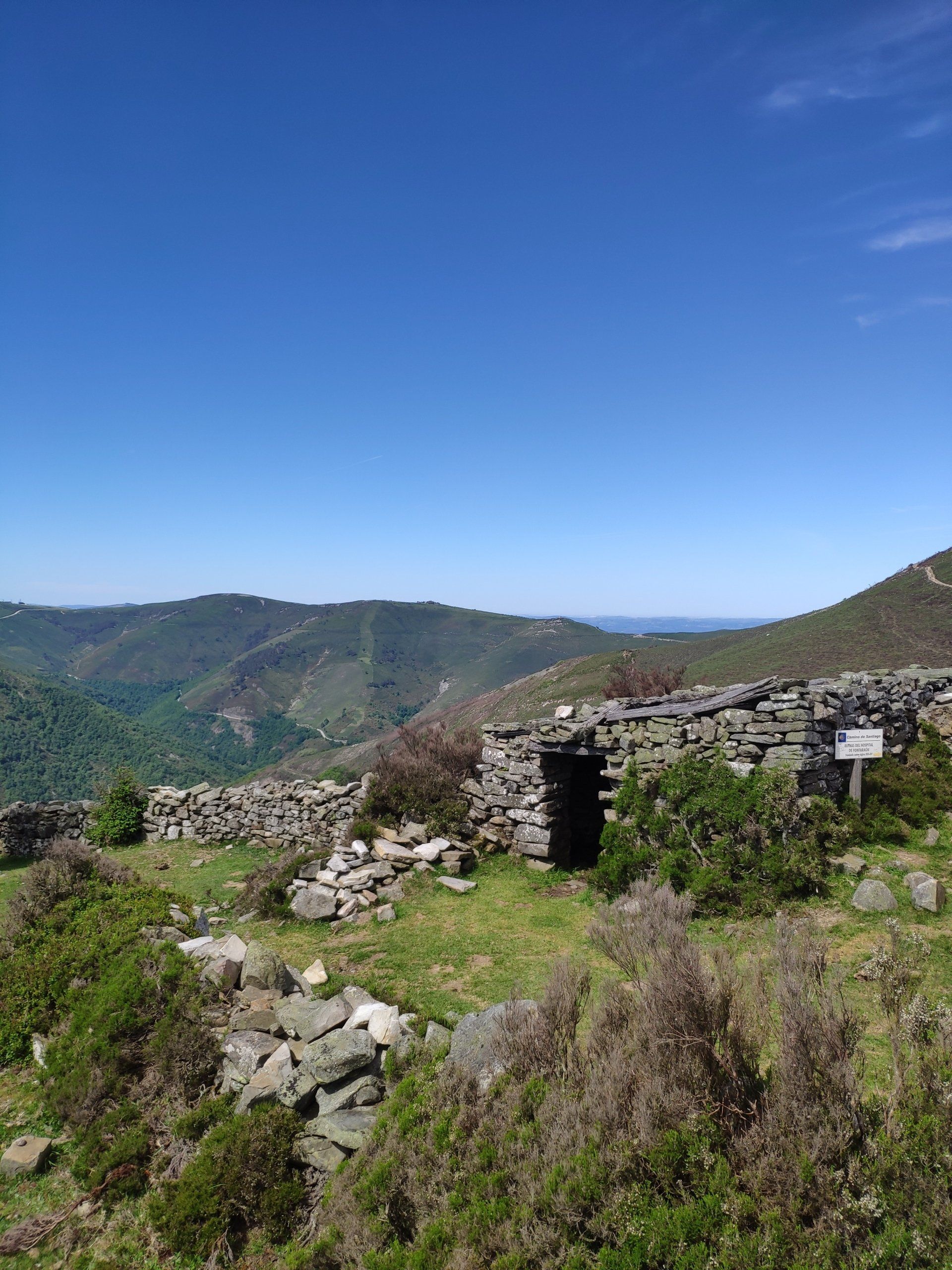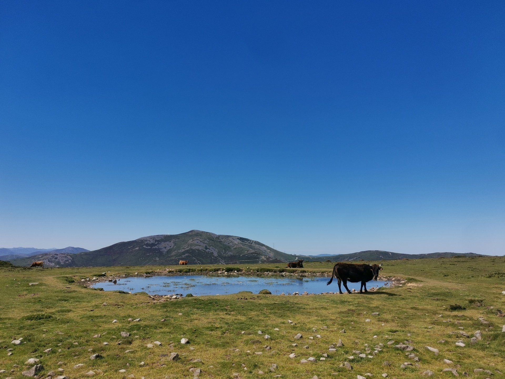 Situándonos en el mojón del primer alto que nos encontramos (Alto de la Portiella), dejando a nuestra derecha el Pico Caborno que acabamos de bordear y mirando al noroeste podemos distinguir los prados de Besapié, una de las tres brañas vaqueiras que poblaron esta sierra y que hoy están prácticamente deshabitada.
