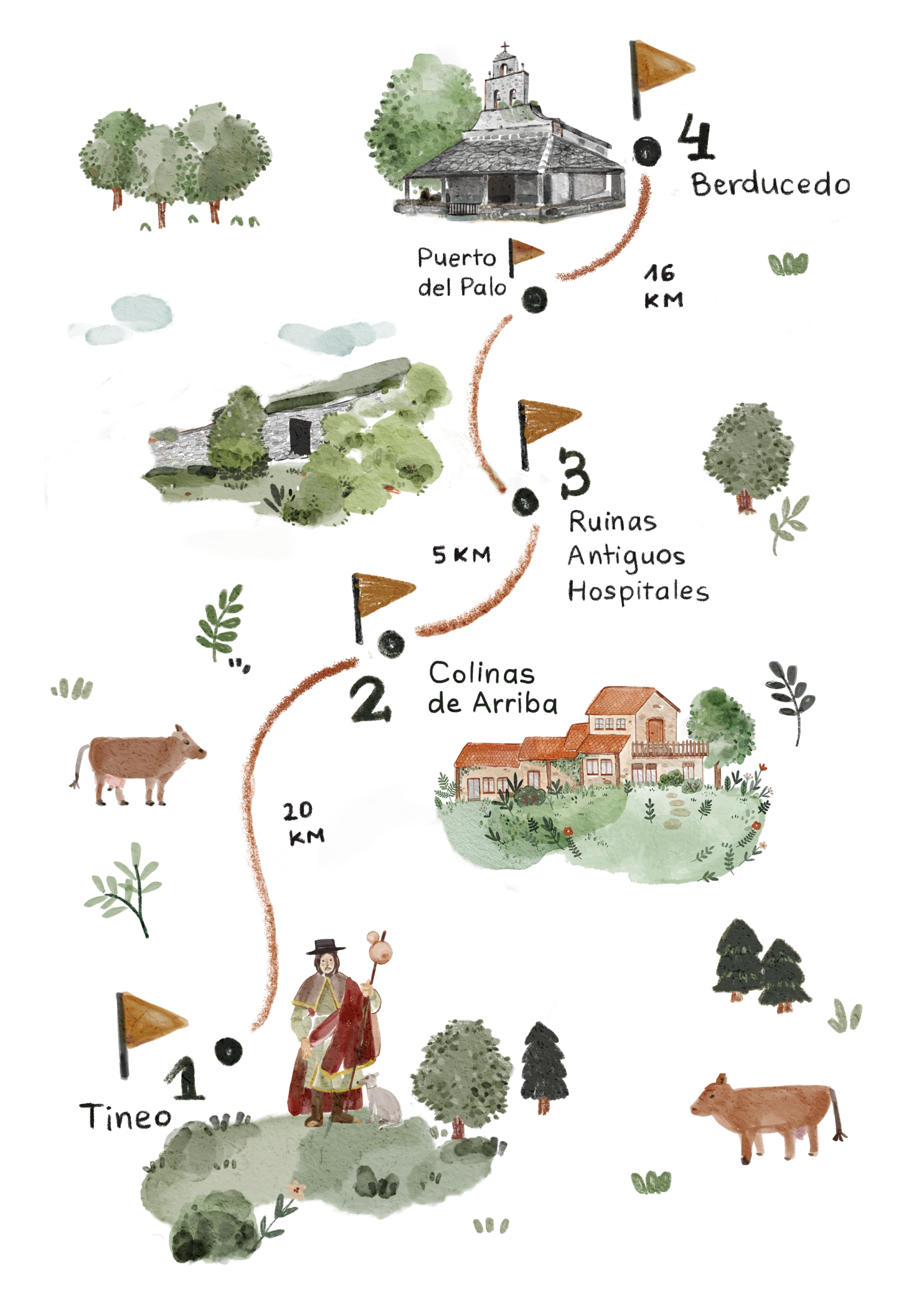 Apuntamos por último Recuebanos, la coqueta laguna que precede a los Hospitales. Como cada ciudad tiene sus calles con sus números, en estos parajes ganaderos cada accidente del terreno, cada roca, cada esquina tiene su nombre, de tal forma que un habitante de la zona podía informar de lo acontecido en el lugar preciso.